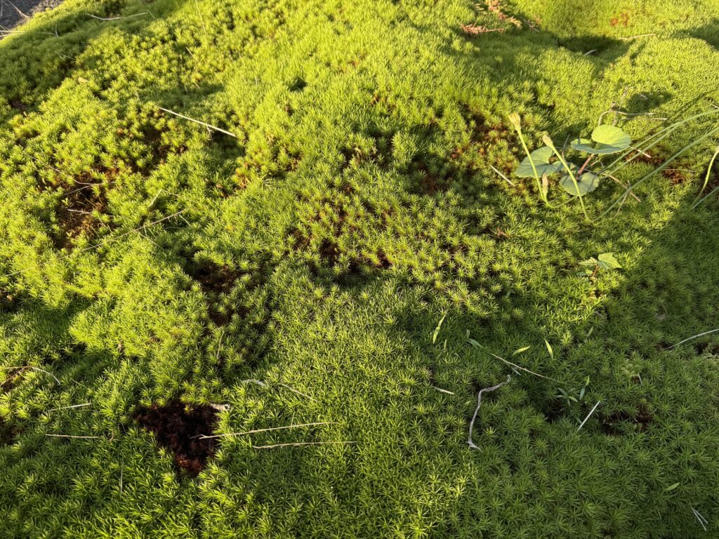 苔が生えていて、夕日に照らされ綺麗でした。